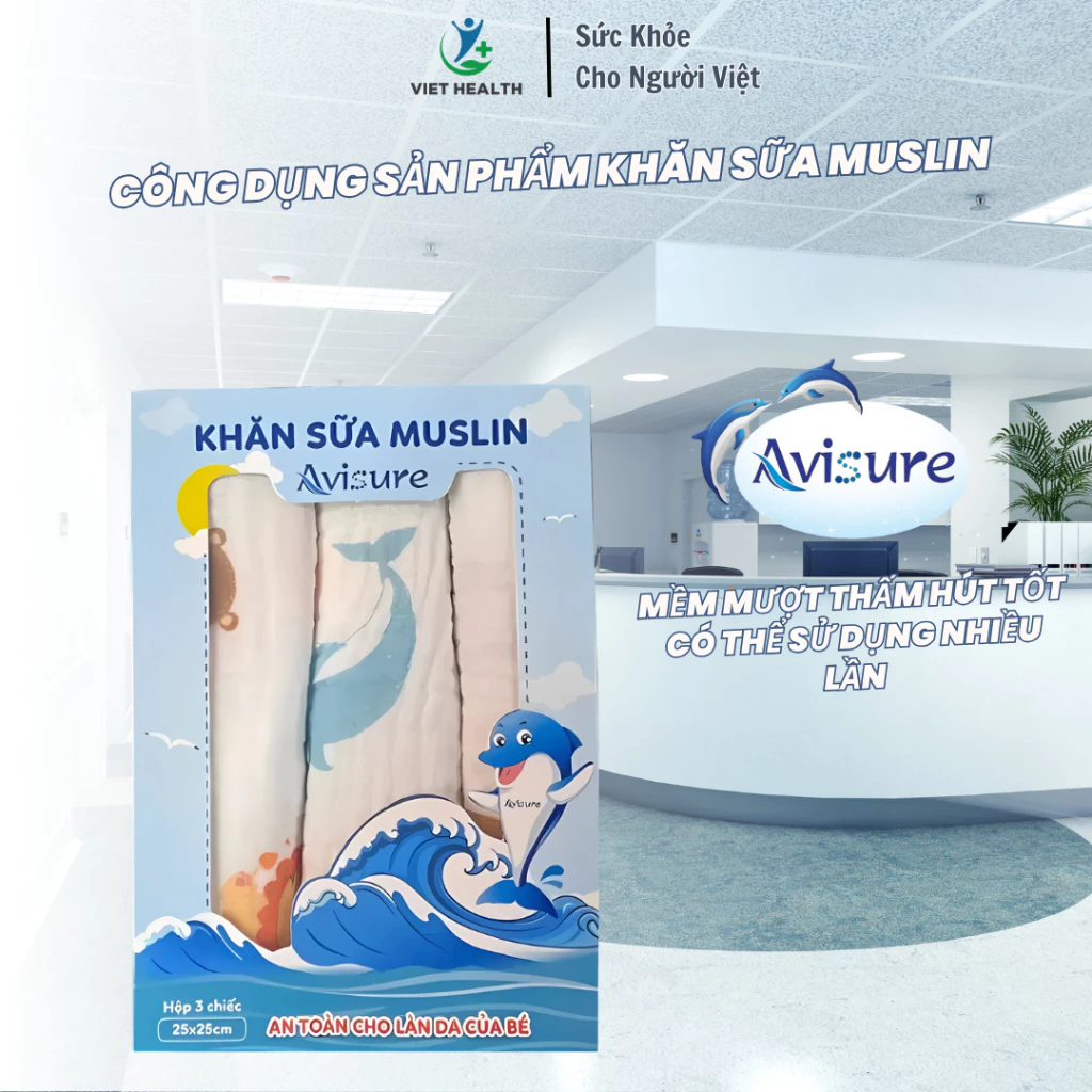 Đánh giá Hộp 3 Chiếc Khăn Sữa Muslin Avisure Siêu Mềm Mịn, Dành Cho Bé Sơ Sinh