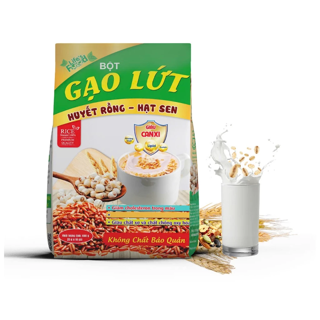 Ngũ Cốc Gạo Lứt Huyết Rồng Hạt Sen Nutrilifes là sản phẩm ngũ cốc dinh dưỡng hòa tan được chế biến từ gạo lứt huyết rồng kết hợp với hạt sen và một số loại ngũ cốc khác. Sản phẩm được rang chín, nghiền mịn và đóng thành 16 gói nhỏ (25g/gói) tiện lợi, giúp dễ dàng pha uống nhanh chóng. Đây là thức uống bổ sung dinh dưỡng, thích hợp dùng làm bữa sáng hoặc bữa phụ hằng ngày.