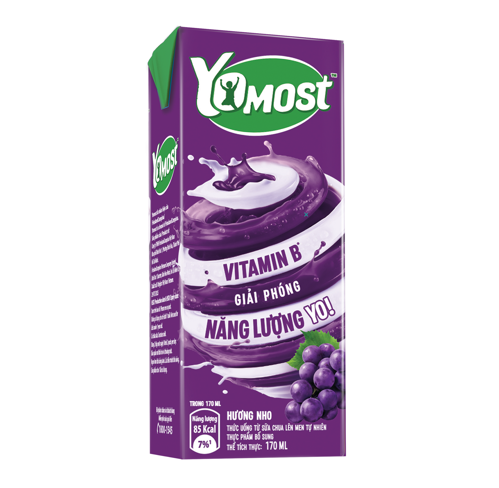 Thành phần: Nước, sữa chua lên men tự nhiên, đường, nước ép nho, chất ổn định, hương nho tự nhiên, cùng vitamin và khoáng chất cần thiết cho cơ thể.