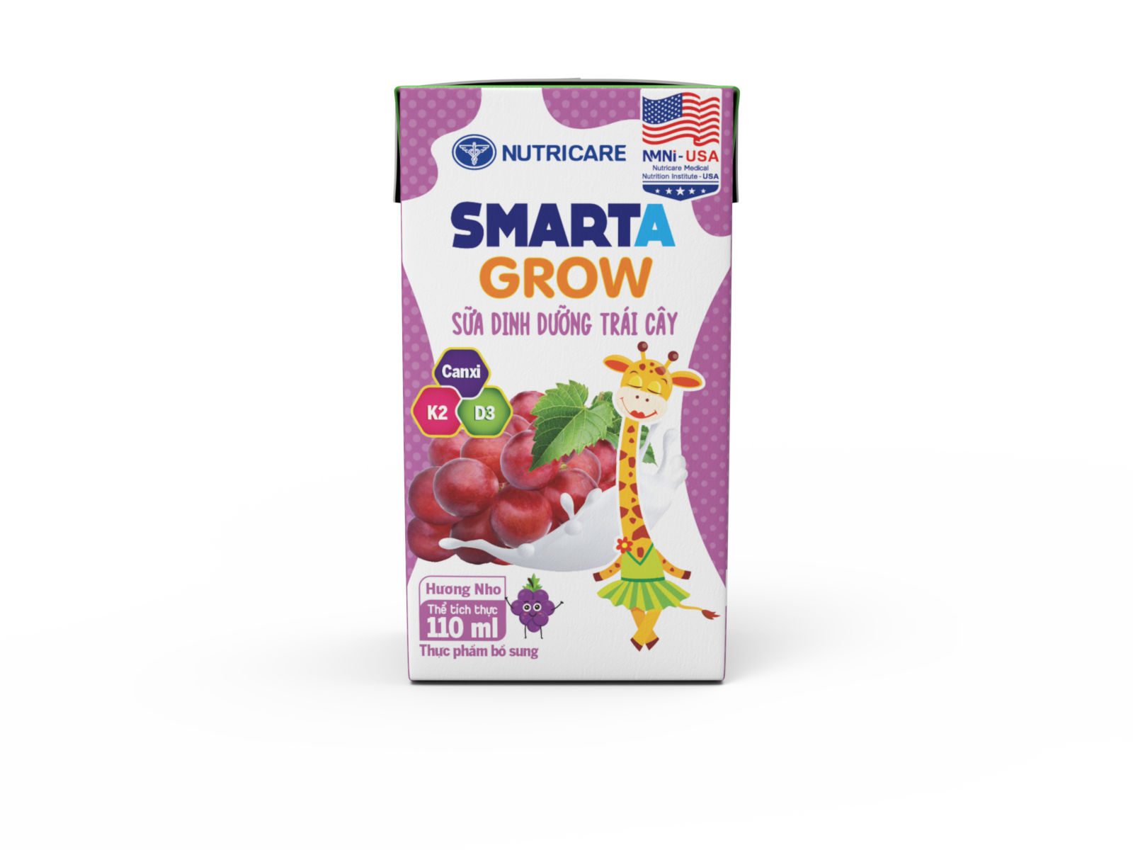 Sữa dinh dưỡng trái cây Nutricare Smarta Grow hương nho 110ml (dạng lốc 4 hộp)