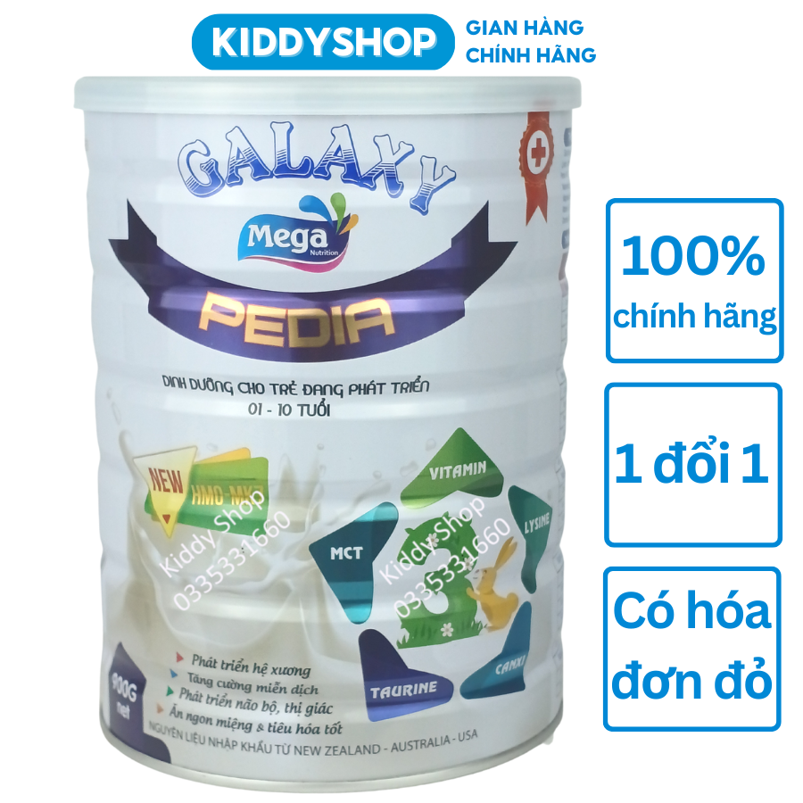 Sữa Galaxy Pedia chứa thành phần Lysine, Taurine, Kẽm, nhiều vitamin và khoáng chất giúp trẻ hấp thu tối đa chất dinh dưỡng, phát triển chiều cao và là yếu tố quan trọng trong việc duy trì hệ miễn dịch, phát triển men tiêu hóa, kích thích ăn ngon miệng.