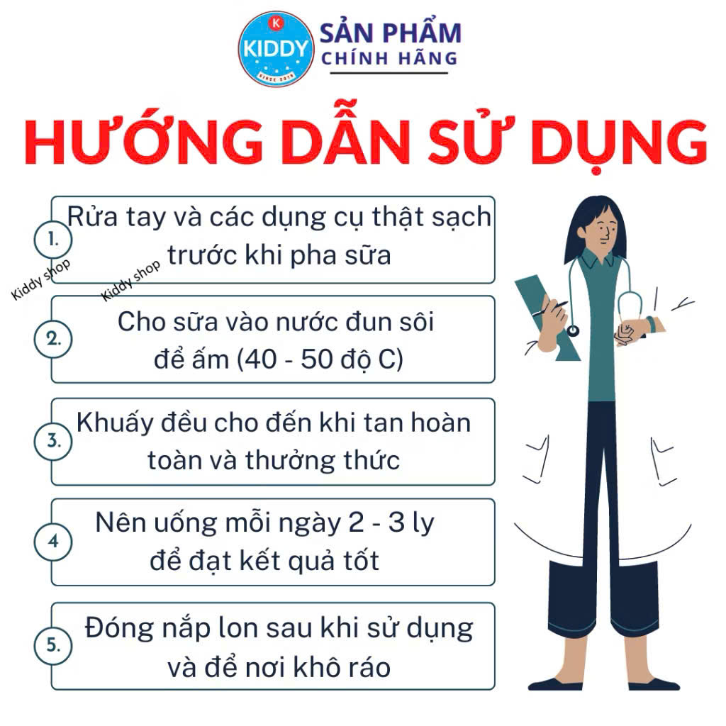 CÁCH PHA: Cho 05 muỗng sữa bột (tương đương 40g/muỗng) vào 180 ml nước sôi để ấm 40-50°C (tỉ lệ 1 muỗng khoảng 45ml), khuấy đều cho hòa tan và thưởng thức.