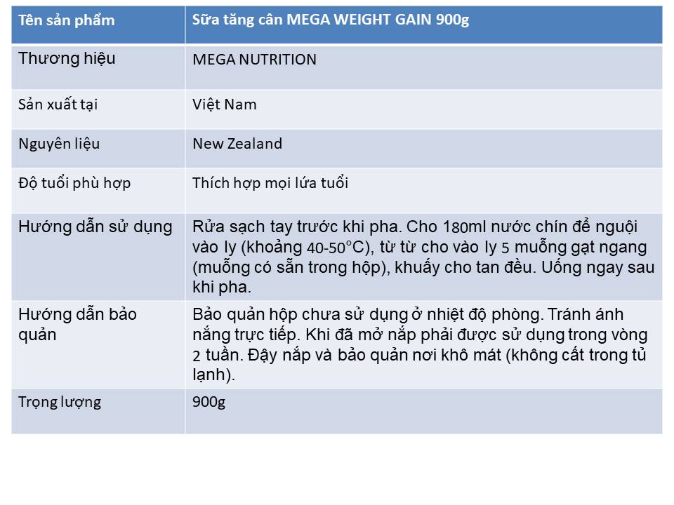 SỮA MEGA WEIGHT GAIN DÀNH CHO MỌI LỨA TUỔI 900G