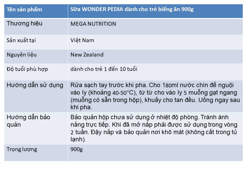 Sữa Wonder Pedia Plus được sản xuất theo công thức tiên tiến, cung cấp đầy đủ dưỡng chất cần thiết cho trẻ từ 1 – 15 tuổi, với thành phần Omega 3, Omega 6, chất xơ tự nhiên (FOS), Prebiotic, Choline, Taurine, Lysine, hỗn hợp vitamin và khoáng chất giúp hỗ trợ phát triển cơ thể của trẻ tối ưu.